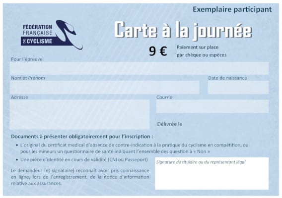 Pour rappel, au niveau du dossier d’organisation dans Cicleweb, une catégorie “Carte à la journée” est présente dans la liste des catégories autorisées. A partir de la première semaine de mai, ce critères sera utilisé pour déterminer les épreuves pouvant être proposées, ce qui bouclera la problématique de l’utilisation réglementaire.
