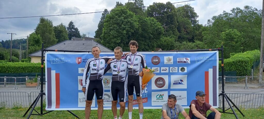 Au contre-la-montre par équipe, le trio formé par Didier LE BRIERE, Guy GEFFROY et Joël SALIOU est médaille d’argent.