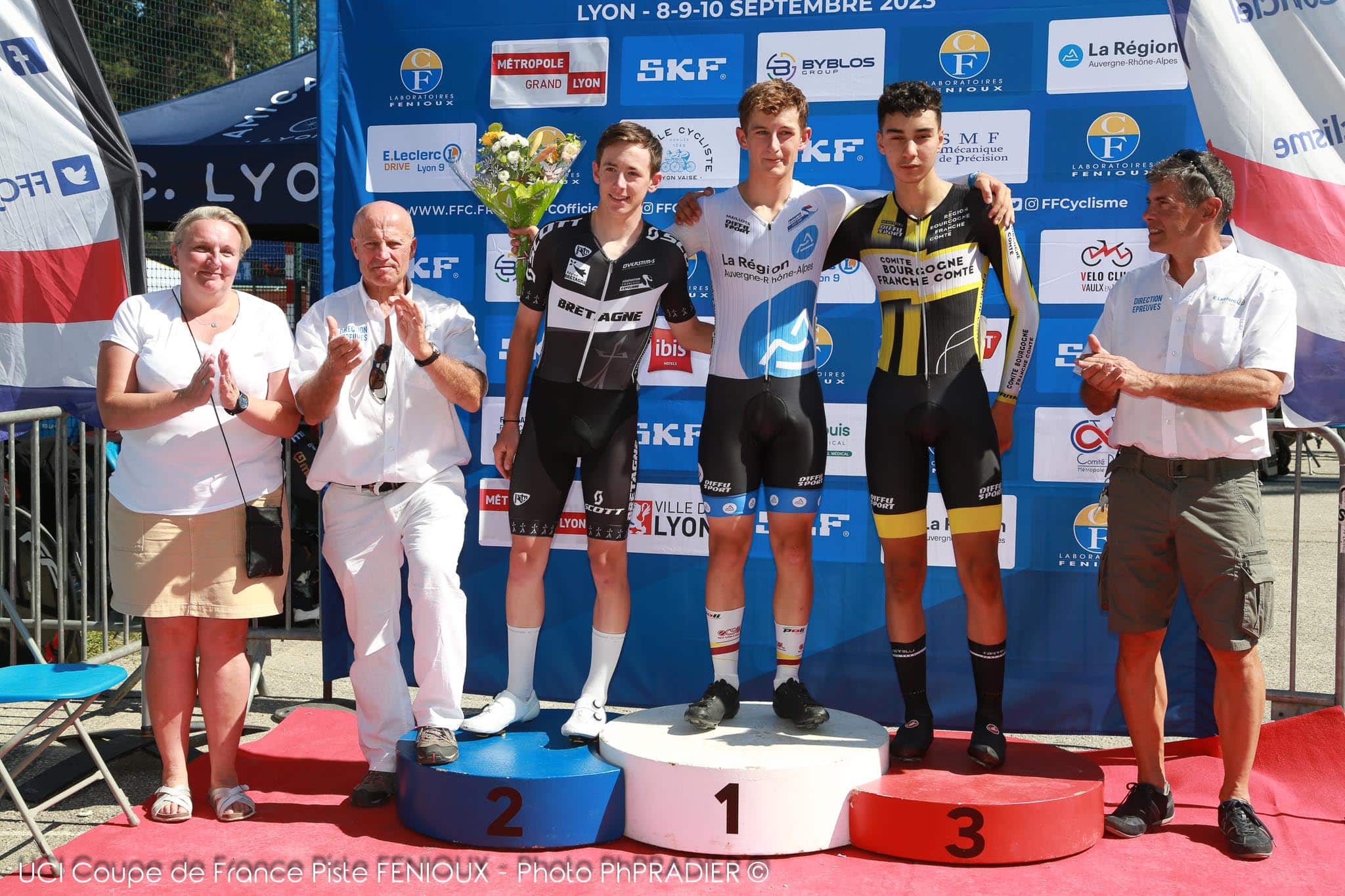 Quentin KEROUEDAN, séparant les deux coureurs de la Région Auvergne-Rhône-Alpes (photo : Philippe Pradier)