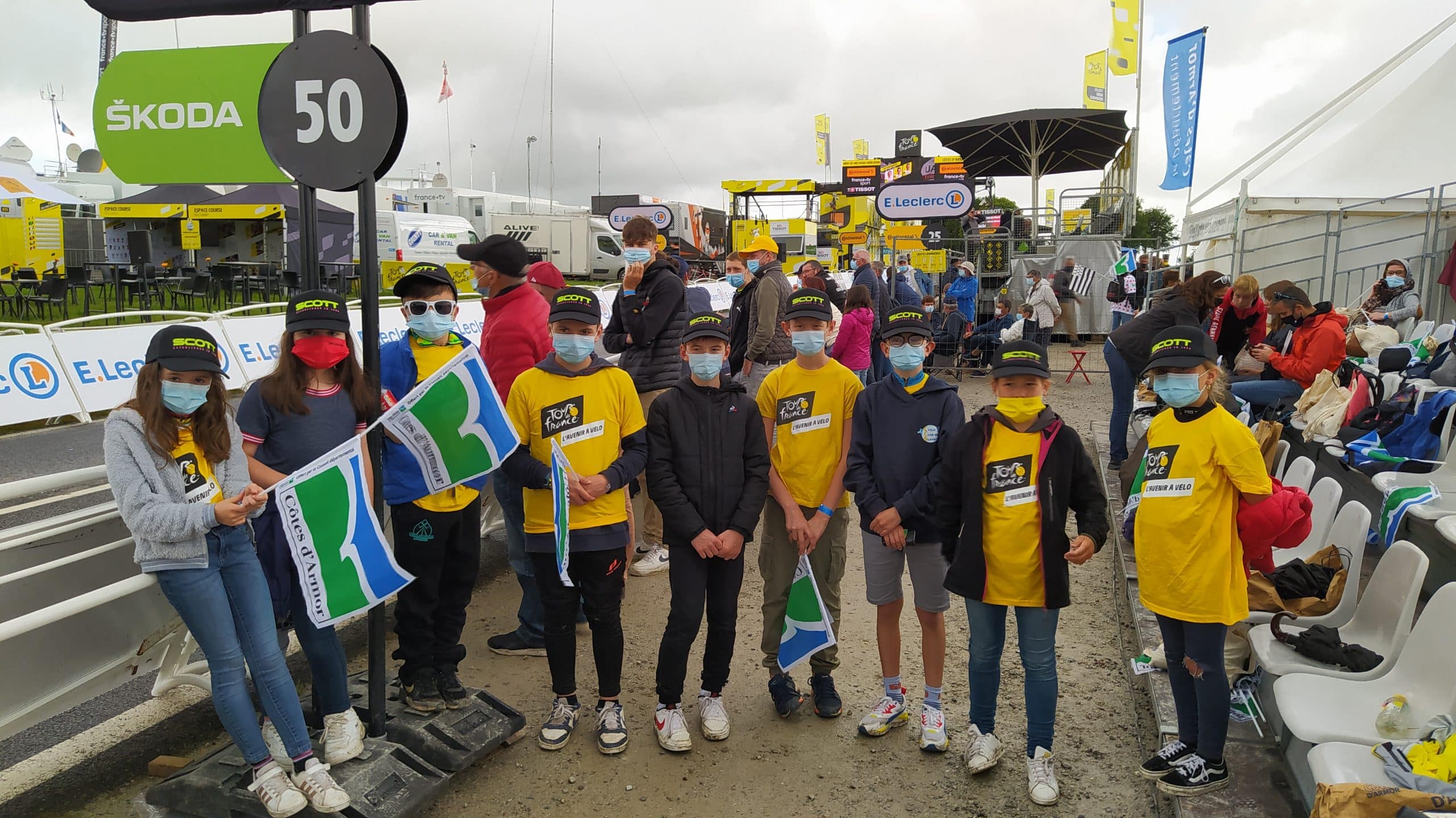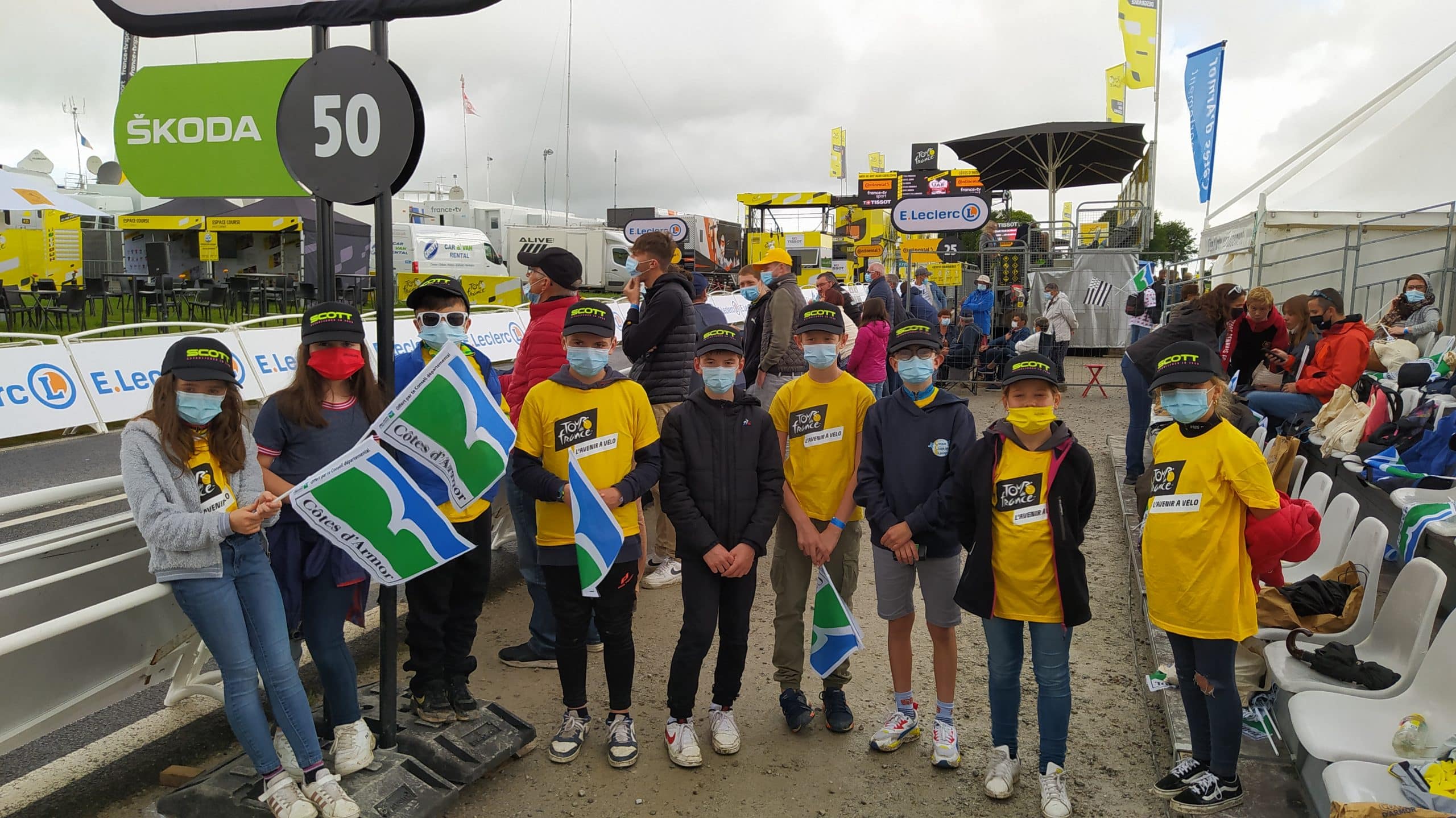 9 enfants tirés au sort pour assister à la présentation du Tour de France à Paris en octobre 2020 (qui a été annulée), ont été invités par la Région à assister à l’arrivée de la 2ème étape du Tour de France dans la tribune du Conseil Départemental.