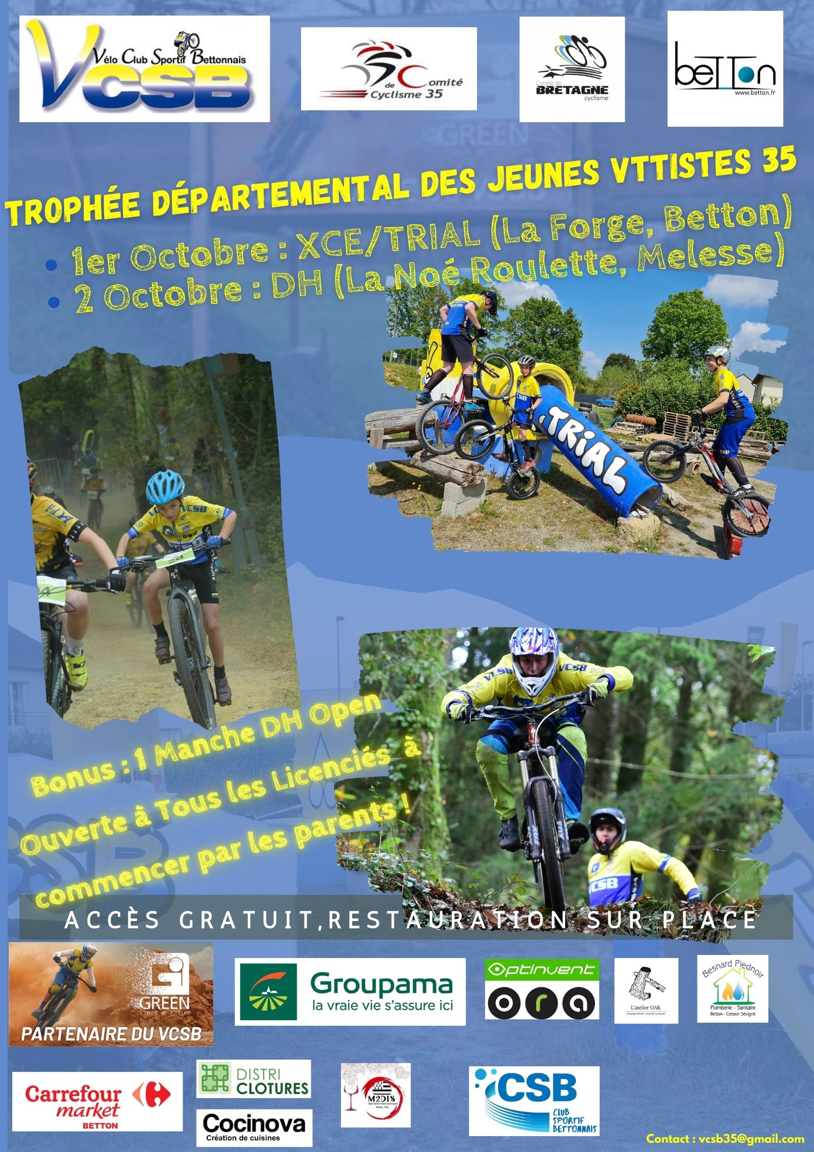 Une “Open DH” (1 manche unique) sera ouverte à tous les licenciés juste pour le fun et permettre notamment aux parents les plus hardis de s’amuser un peu. Les juniors et séniors seront aussi les bienvenus.