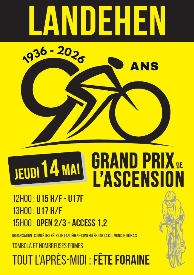 Mai 14 Landéhen – 90ème Grand Prix de l’Ascension Toute la journée LANDÉHEN LANDÉHEN Détails des événement Recevoir l’Itinéraire à suivre