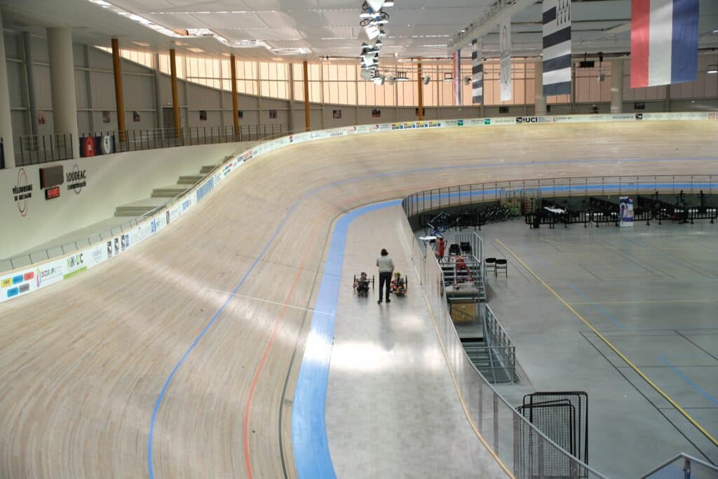 En effet, le club du Team Road Runner Handi-Sport, basé dans le Morbihan et référence dans le paracyclisme, s’est essayé sur la piste en bois de 200m sous l’œil avisé de notre animateur piste Stéphane IZORE.