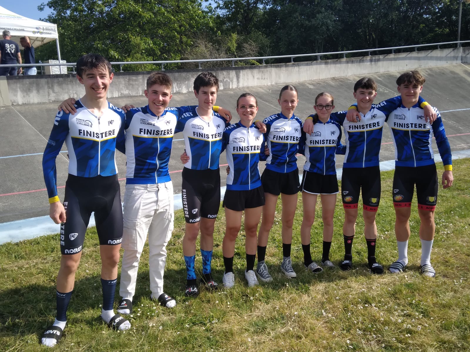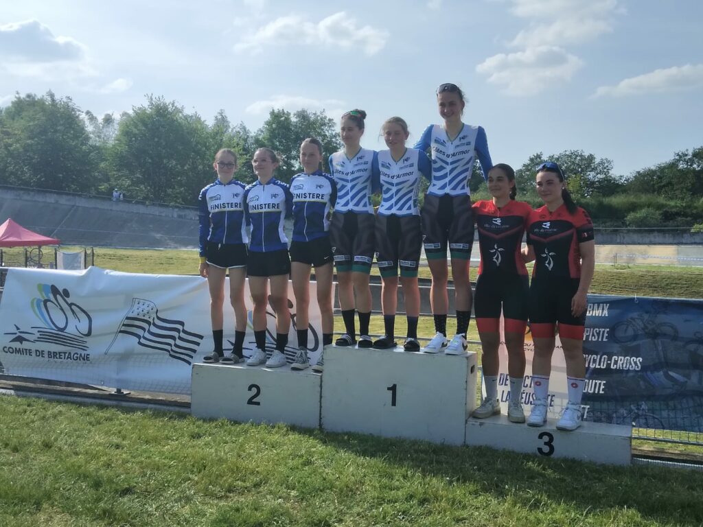Samedi dernier se disputait sur le vélodrome de Vannes la 5eme et dernière manche de la Coupe de France “Grand Ouest”, qui comprend 15 départements. Avant cette dernière manche les Filles U15/U17F se classaient à la deuxième place par équipe et en individuel, Eloanne Le Breton était 2eme, Moéna Kleinclauss 7ème, Jessica Rouat 12 ème et Coline Kleinclauss 24ème. Il fallait terminer dans les 20 premières pour accéder à la Finale Nationale. Eloanne ne faisant pas de piste ne pouvait pas améliorer son classement. Et donc après cette manche piste nos Finistériennes terminent ainsi : Moéna 6ème, Eloanne 7ème, Jessica 8ème et Coline valide sa finale en terminant 17ème.
