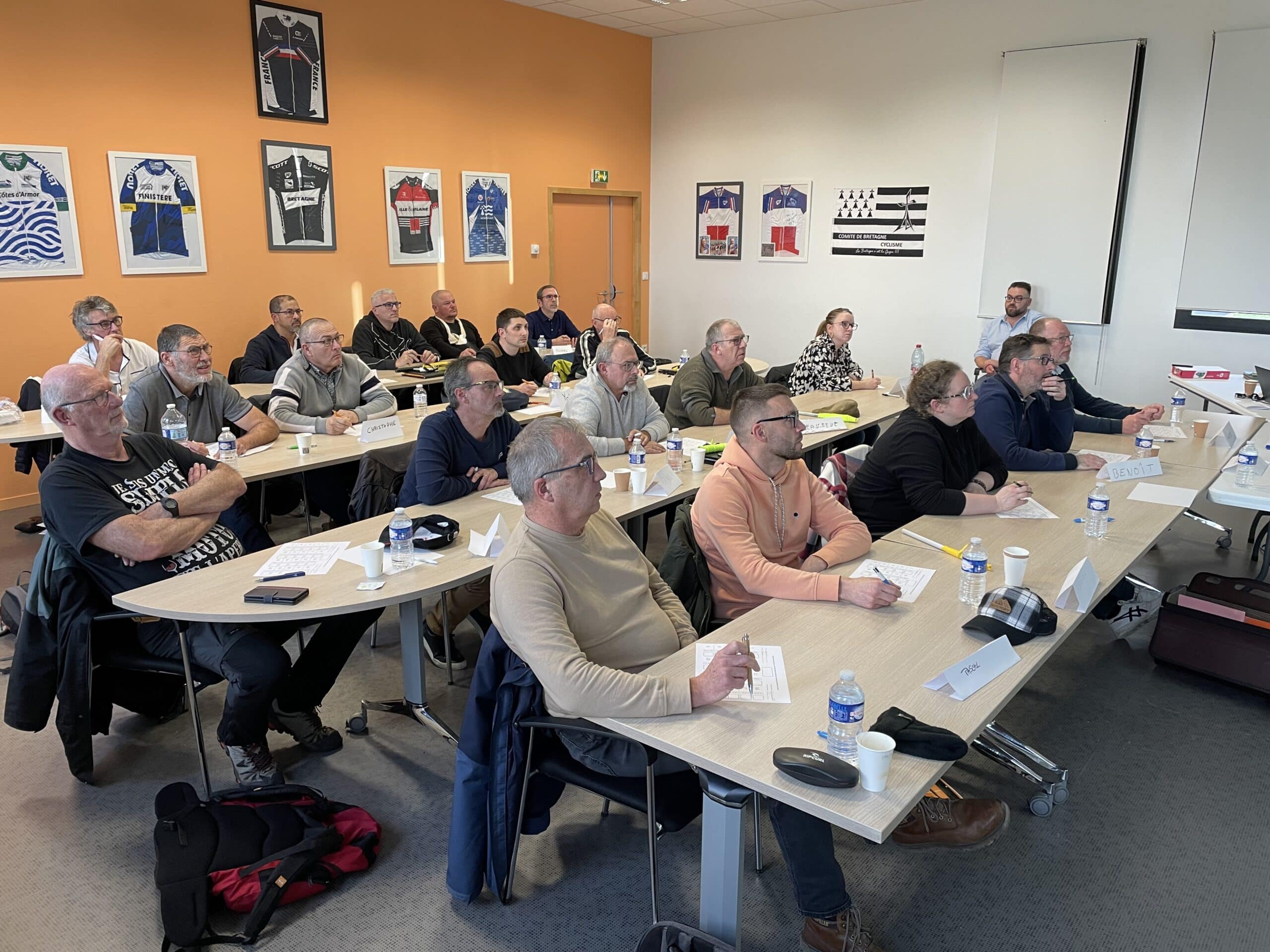 Deux groupes de 19 personnes se sont succédés ces 25 et 26 janvier derniers, lors de la formation motards organisée dans les locaux du Comité de Bretagne de Cyclisme.